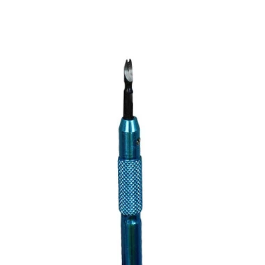 This tool is a variation on the versatile Spring Bar Tool. This model is called “Japanese” because it originated in Japan and features a slightly curved fork tip. This variation on the fork tip is the reason for its popularity: many people prefer this shape for getting under straps and bands of a watch. This spring bar tool is made of an anodized aluminum body with hardened tool steel double-ended tip. The weight, handle knurls, and size make this watch tool ideal for the delicate job of adjusting the size of watch bands or repairing a watch clasp. Each tip is removable and has identical threading making it easy and convenient to change or replace the tips as necessary for repair work