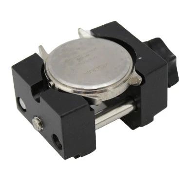 Made in the more original style of case holders, this tool does not have pins to the hold the watch in place. Rounded aluminum edges clamp the watch in place. Capacity is 18mm to 40mm with a cutout for the stem and crown at 6mm wide.