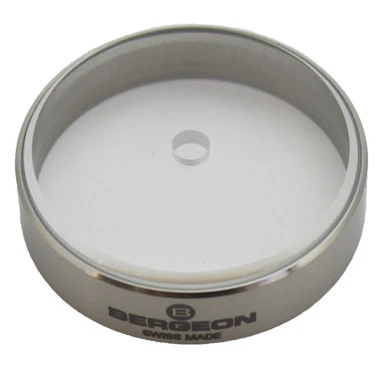 This genuine Bergeon hairspring holder has a glass top for standard balances. It has a brushed stainless steel base with a glass top and a center hole with the diameter of 3.5mm. It is great for holding those small hairsprings while you are repairing your watch.