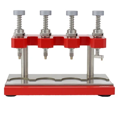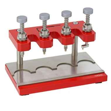 This Horotec tool was designed to make watch hand fitting as simple as possible. This hand press can be used when pressing hands in both wrist watches and pocket watches. It comes with four different PEEK tips: 1.35mm, 0.95mm, 0.30mm, and a non-centered flat tip. It also has four plungers and springs to make hand setting even easier. PEEK and Stainless Steel replacement tips are available.