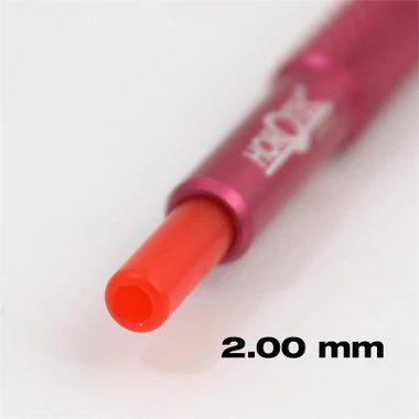 French made and recommended for quartz watch hand replacement and fitting (installation). These fine watchmakers tools have two ends that are plastic to protect the watch face and dial from scratches or marring. Features solid aluminum body and knurled grip that are both lightweight and sturdy for delicate work. This tool will help in putting the hands on with no slipping and even pressure so they do not bend the hands or the watch movement post. Double ended for various size watch hands and posts. 4 size tools available each with 2 different size ends, tools sold separately. Each tool has a hole in the end in which to fit the watch hand post when pressing into place when installing hands, except for 64.013 which has one hole and one solid end but still serves the same purpose of a wristwatch hand install tool.