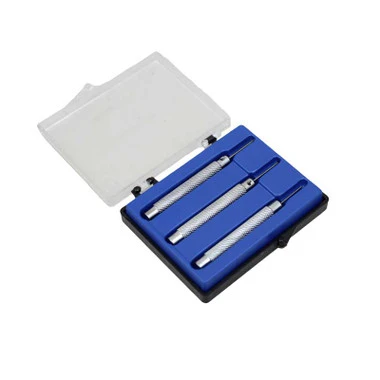 This set is an ideal set of pin punches, made just for removing pins and good for riveting watch and jewelry items as it comes in three different sizes. These sturdy pin punches have knurled handles for a secure hold. Tips are replaceable, they are available to purchase separately and are very inexpensive, as well as easy to replace-simply remove the set screw and change. Use with a small hammer and band block for removing band pins and sizing watch bands. Includes plastic storage box to keep punch set organized.
